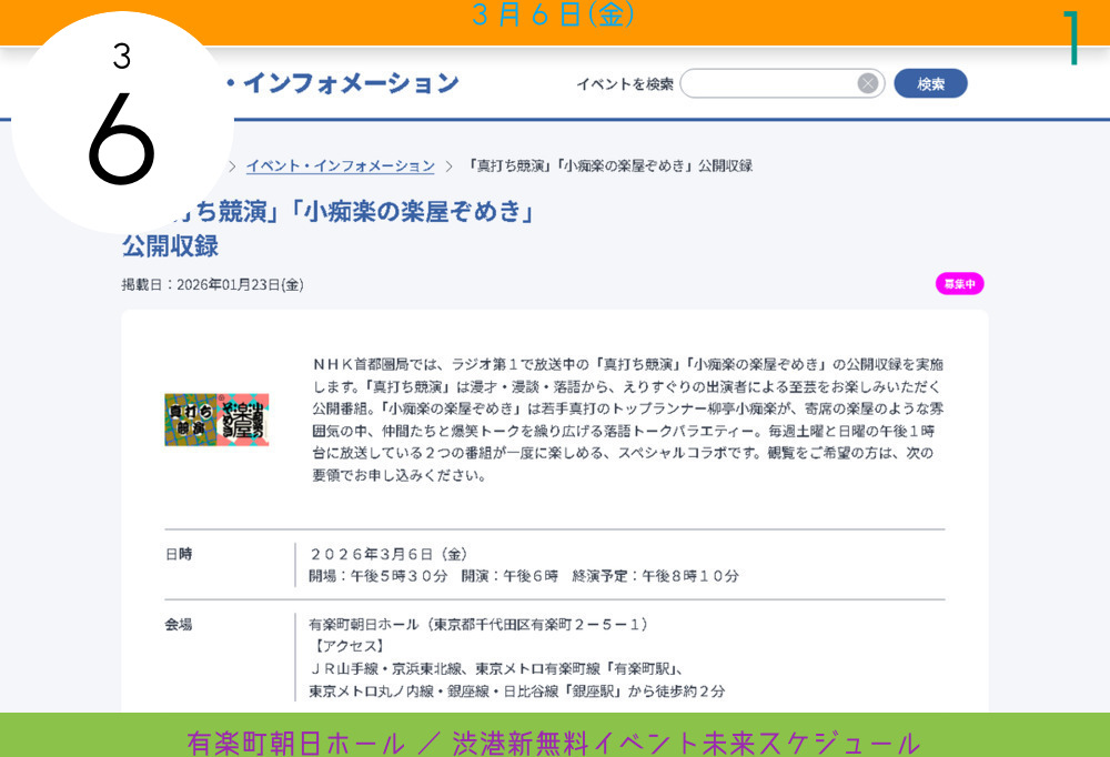 | 2 | 渋港新無料イベント未来スケジュール | 64 |